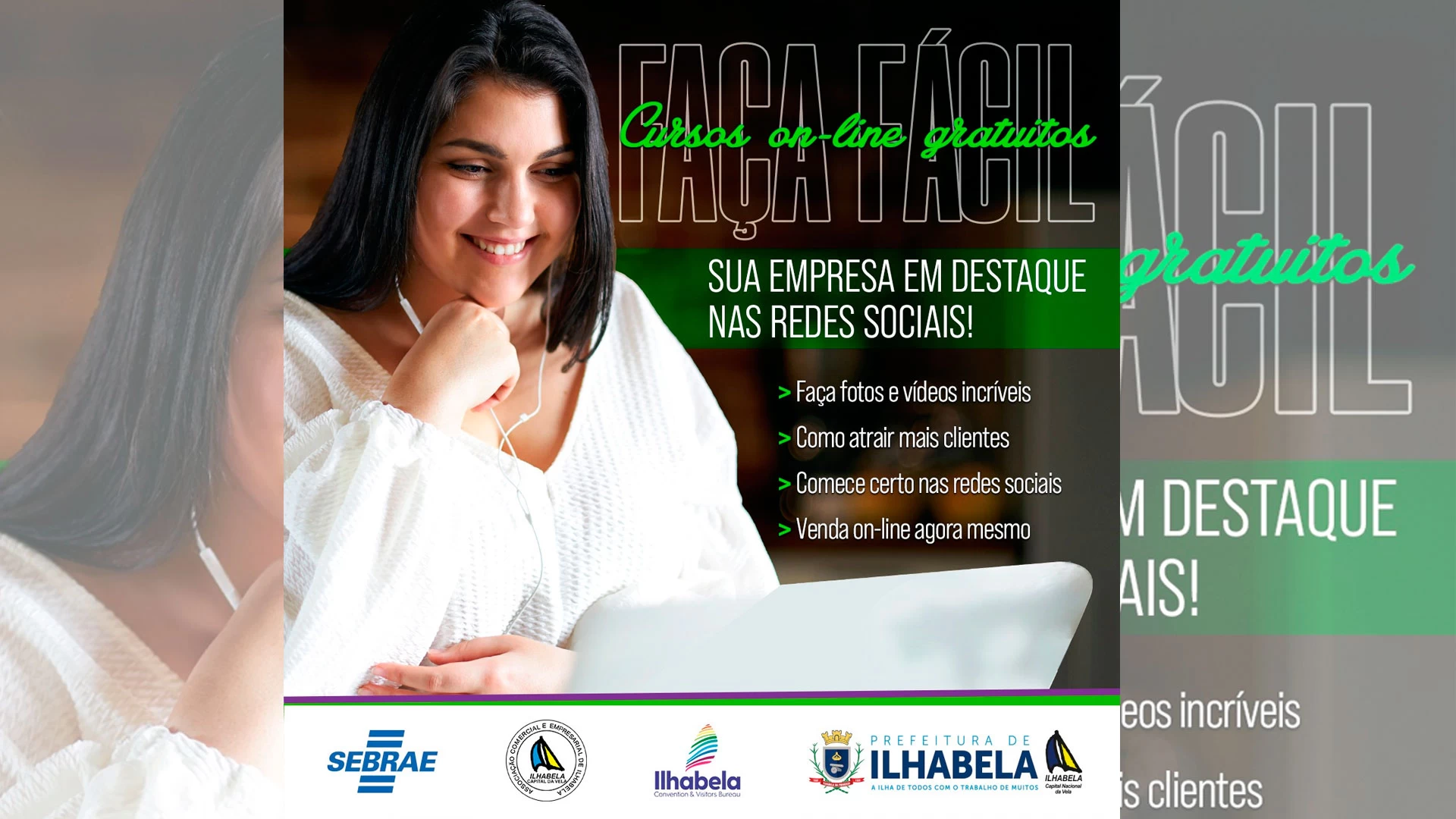 A Prefeitura, em parceria com o posto “Sebrae Aqui Ilhabela”, está com inscrições abertas para os cursos “Faça Fácil”, oferecidos no mês de janeiro. São quatro opções, voltadas para quem deseja inserir seu negócio nas redes sociais. As inscrições são gratuitas e devem ser realizadas por meio do link da opção escolhida: