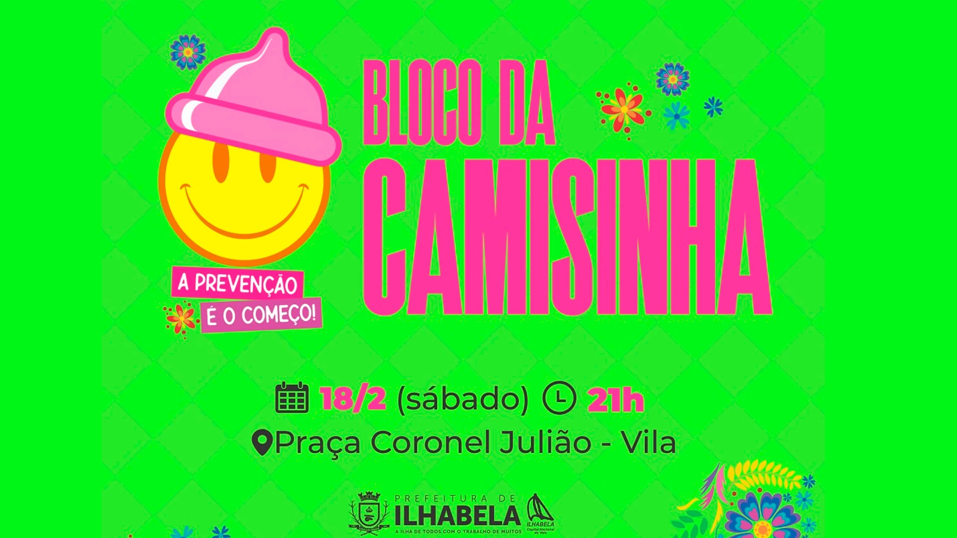 Neste sábado, 18, às 21h, o tradicional Bloco da Camisinha, iniciativa da Secretaria de Saúde de Ilhabela abre oficialmente os desfiles dos Blocos de Embalo do segundo fim de semana das festividades carnavalescas no arquipélago. A concentração começa às 20h na Praça Coronel Julião, na Vila.
