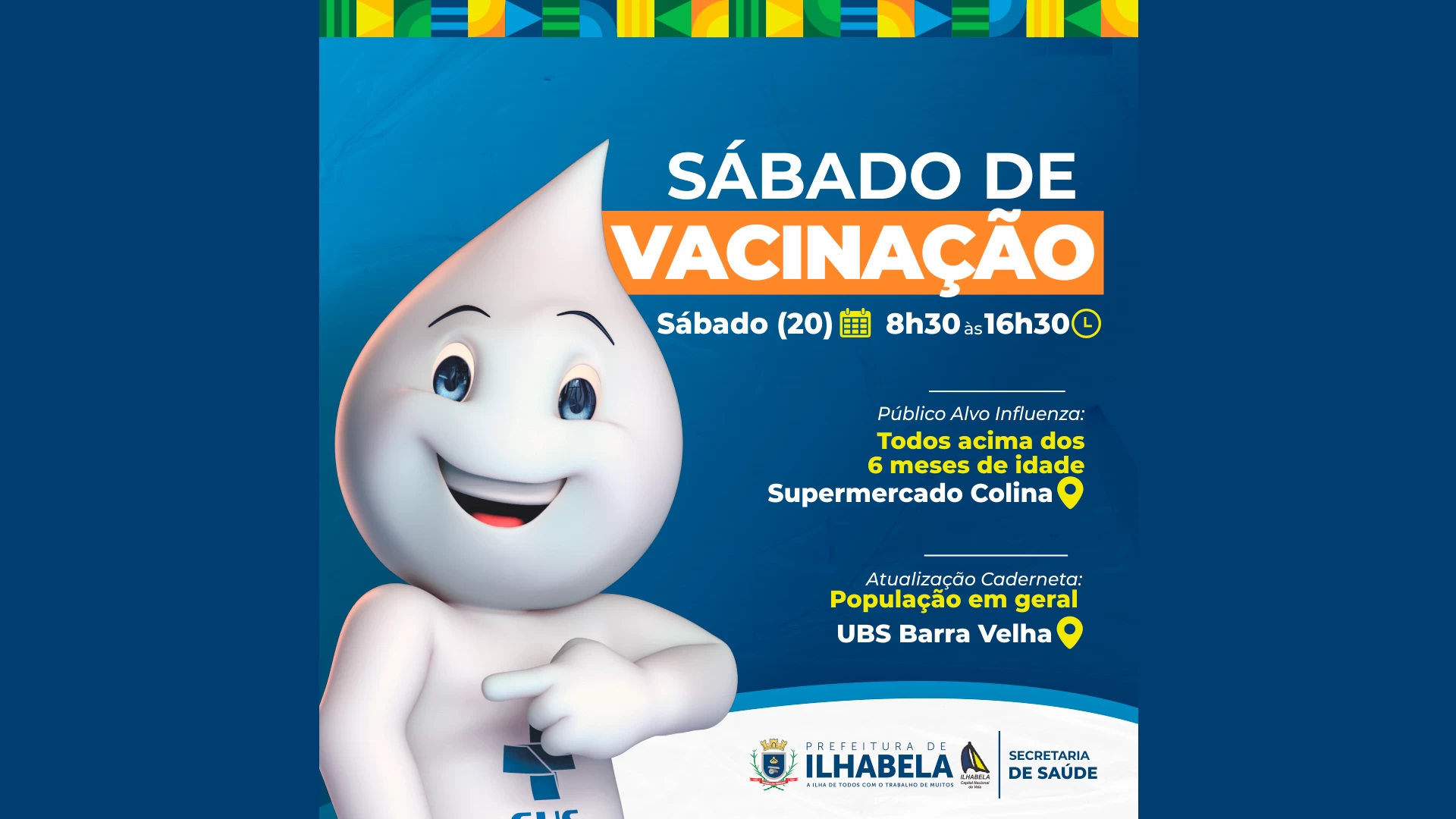 A Prefeitura de Ilhabela, por meio da Secretaria de Saúde realiza neste sábado (20) um dia para atualização da caderneta de vacinação, entre 8h30 e 16h30 na Unidade Básica de Saúde da Barra Velha, localizada na rua Benedito dos Santos Sampaio, 225.