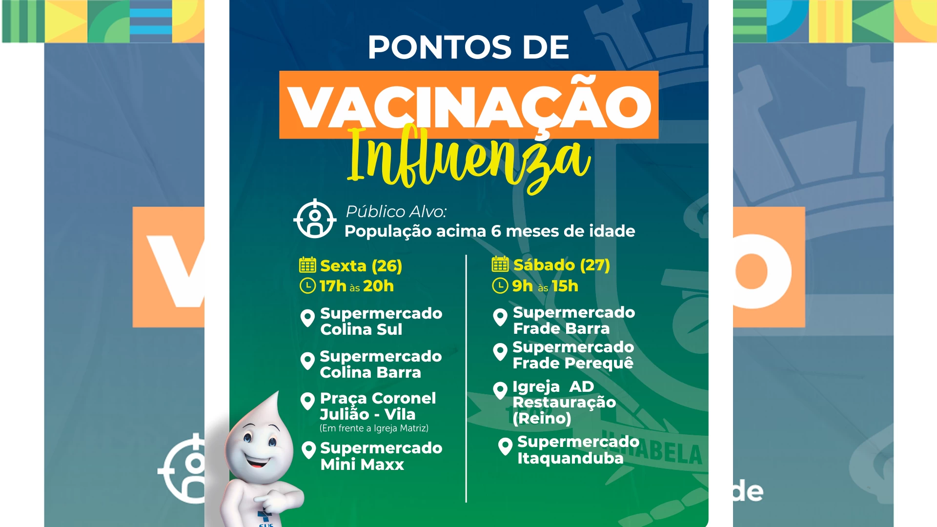 A Campanha de Vacinação contra Influenza segue em Ilhabela com horários estendidos em pontos estratégicos da cidade durante este fim de semana.