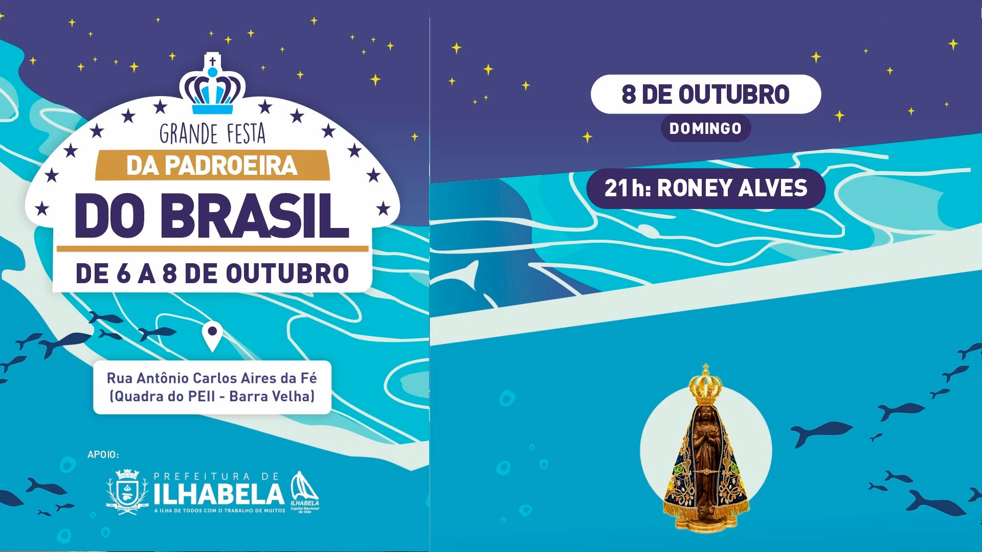 Ilhabela recebe as comemorações sociais da Festa da Padroeira do Brasil neste fim de semana (6 a 8/10). Barracas típicas, sorteio de prêmios e atrações musicais com destaque para shows com o grupo Originais do Samba e a dupla Althair & Alexandre integram a programação que começa sempre a partir das 20h na quadra do PEII – Barra Velha.