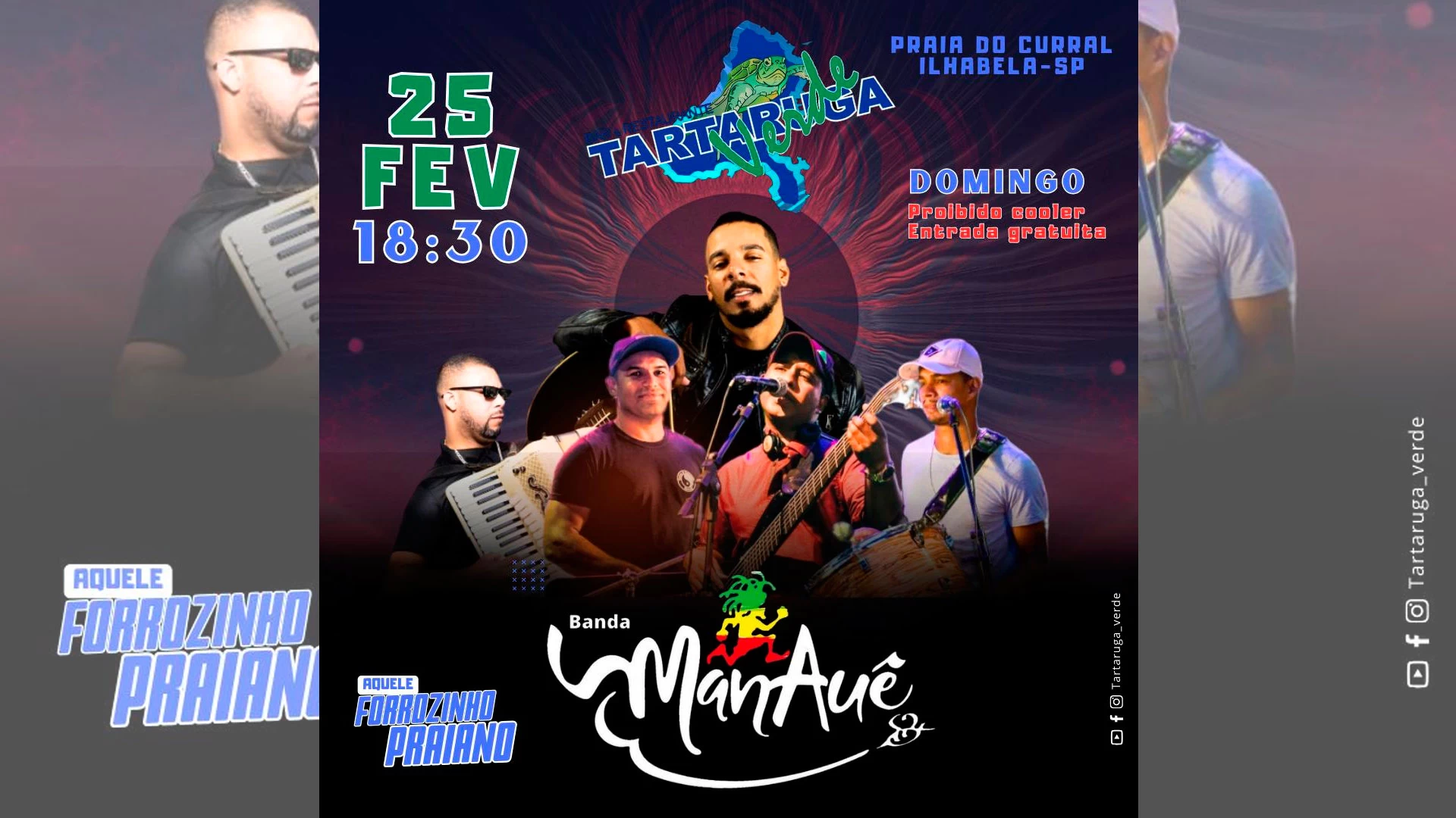 E domingo, 25 de fevereiro, tem o tradicional forró pé na areia do Tartaruga Verde!! A banda Manauê alegra a nossa noite, das 18h as 23h e com entrada gratuita!! Só vem se divertir com a gente!!