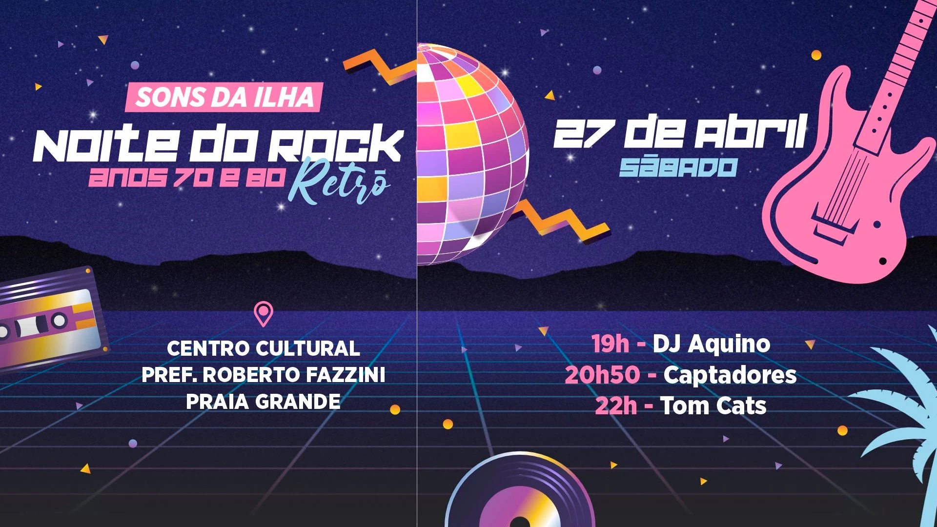 O Sons da Ilha - Noite do Rock Retro está chegando aí! Vem para este embalo de sábado à noite.