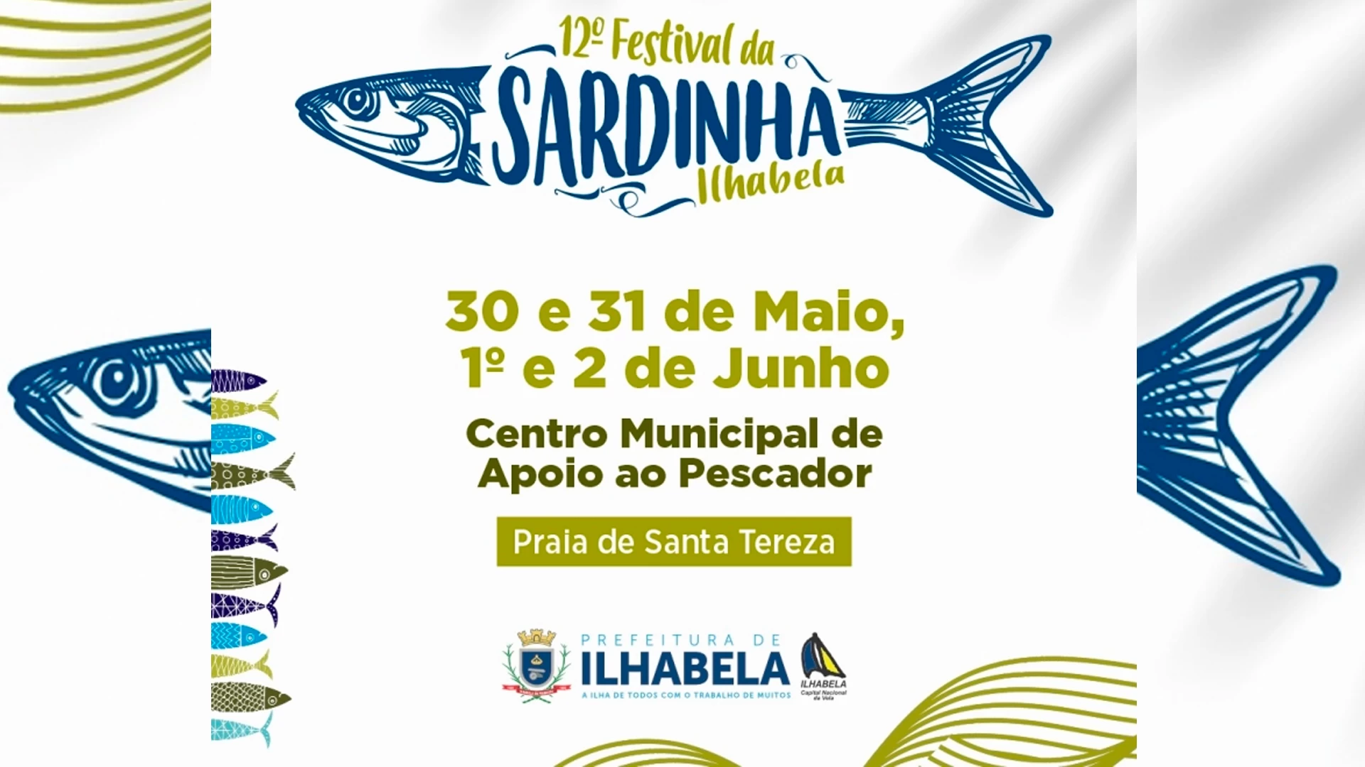A Prefeitura de Ilhabela divulgou a nova programação do 12° Festival da Sardinha de Ilhabela, que agora será realizado no Feriado de Corpus Christi, de 30 de maio a 2 de junho, no Centro Municipal de Apoio ao Pescador, na Praia de Santa Tereza.