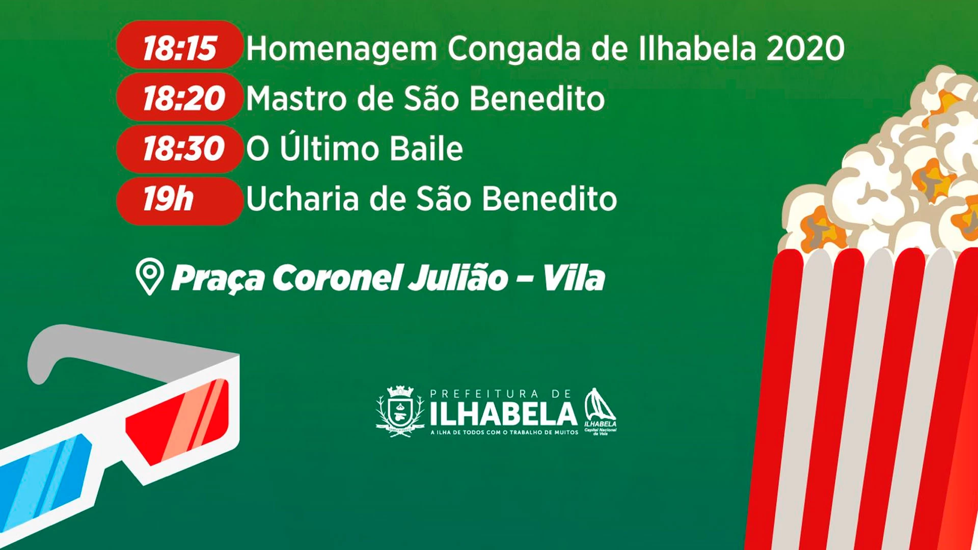 O Cine Villa Bella & Clube de Ilhabela divulgou, nesta quarta-feira (2), a programação desta semana com curtas e média metragens que homenageiam a cultura caiçara e a principal manifestação cultural de Ilhabela, a Congada de São Benedito.