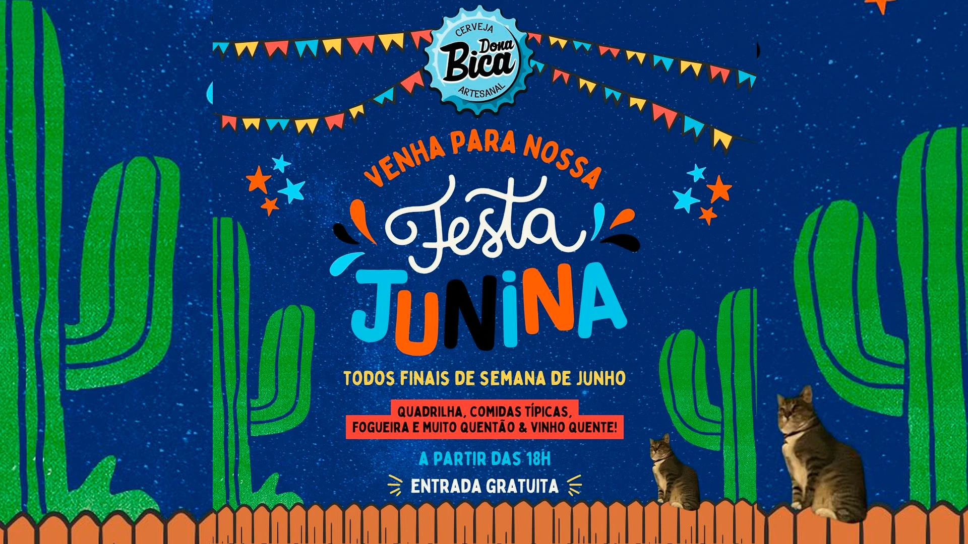 Todos os finais de semana de junho, no espaço da @garagedonabica, vai rolar comidas típicas, vinho quente, quentão e fogueira para esquentar o corpo, e claro que não pode faltar, a melhor cerveja artesanal da Ilha!