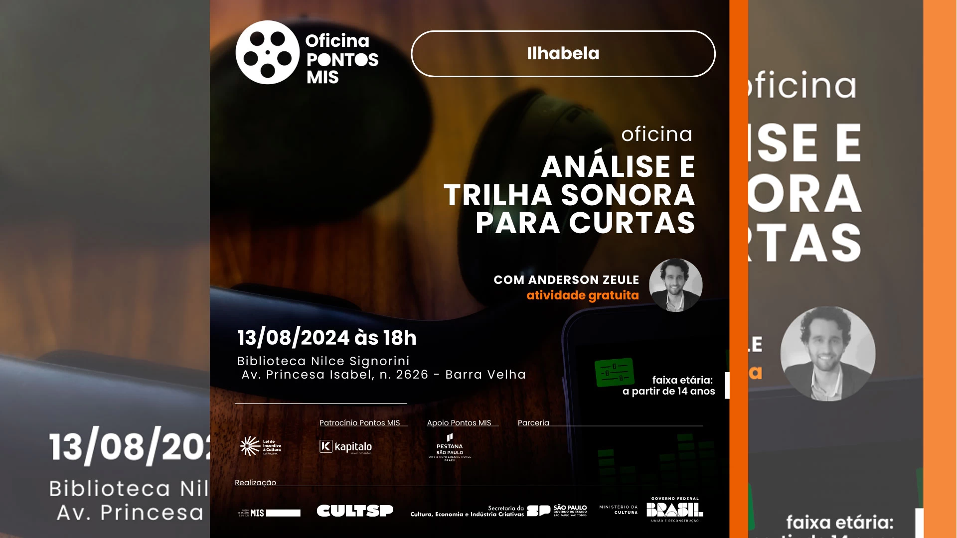 Sinopse: Descubra o poder da música na narrativa cinematográfica com a nossa oficina de análise de trilha sonora para curtas-metragens. Nesta experiência imersiva e interativa, você aprenderá a identificar e compreender os elementos essenciais de uma trilha sonora, como a escolha de instrumentos, ritmo, melodia e harmonia. Analisar grandes obras cinematográficas e entender a relação e os diálogos das cenas e suas respectivas trilhas, além do conjunto da trilha na concepção geral e total da obra.