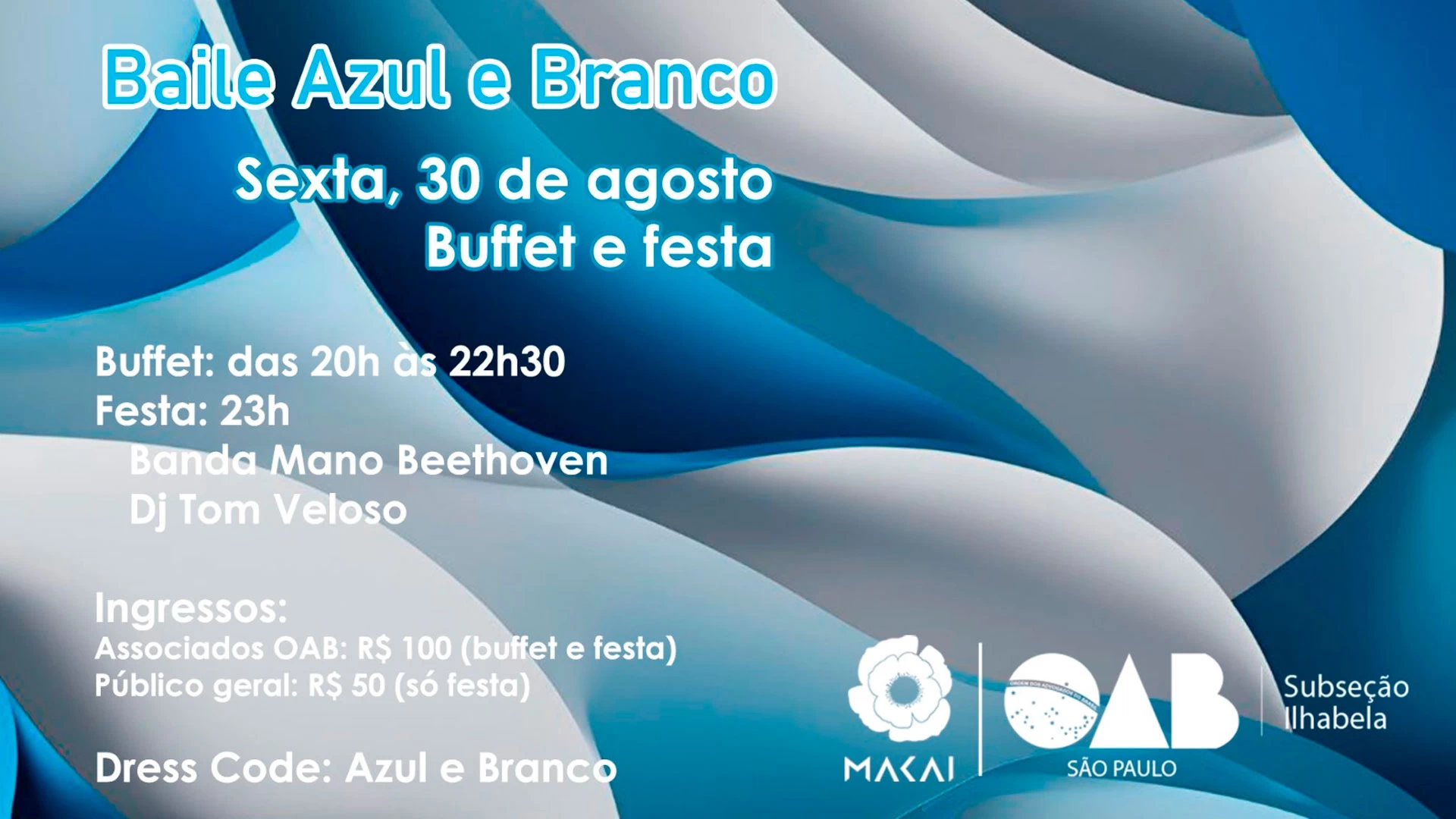 Em parceria com a @oabspilhabela , para celebrar o mês do advogado, faremos uma festa para todos: o Baile Azul e Branco.