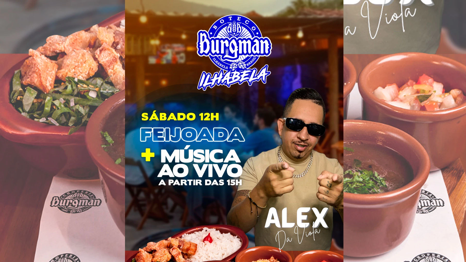 Feijoada e Música ao Vivo no Burgman em Ilhabela