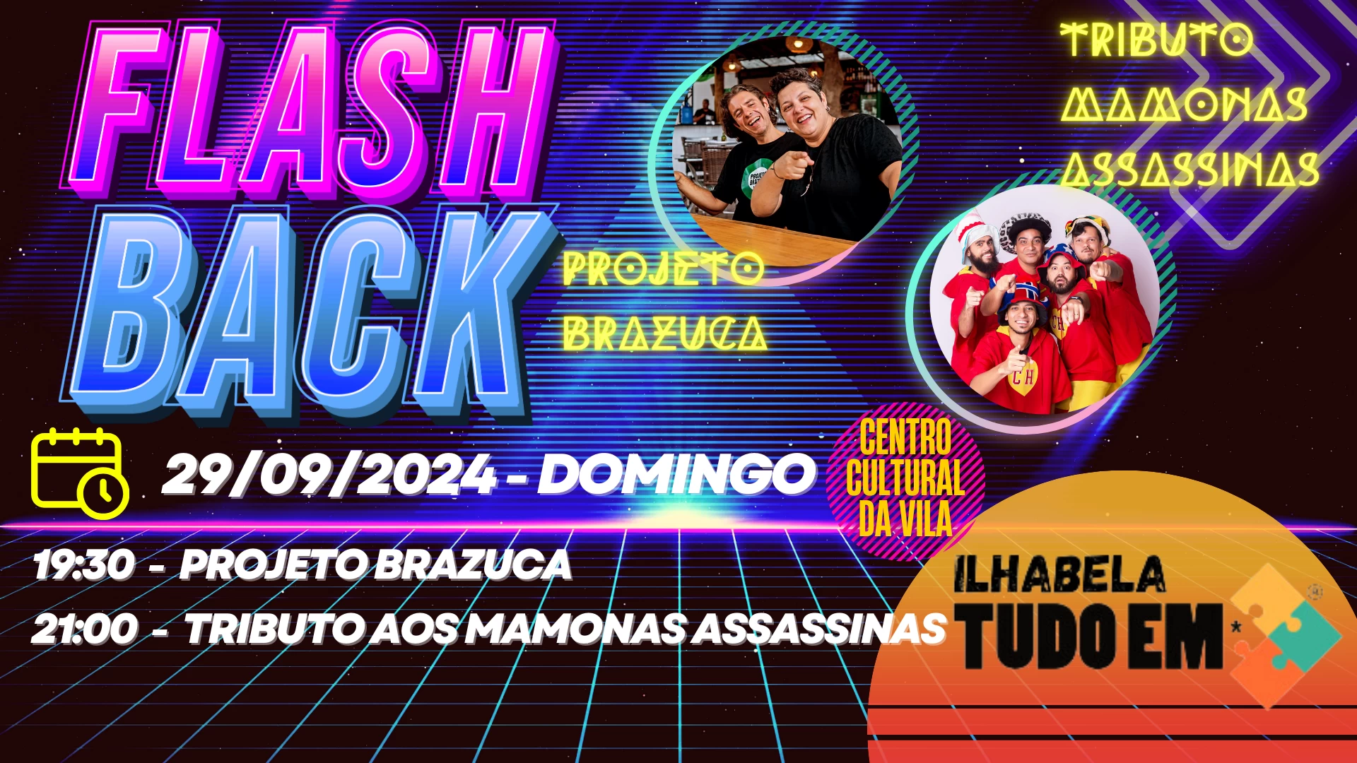 O Festival Flashback Ilhabela 2024 é uma realização da Prefeitura de Ilhabela, por meio da Secretaria de Cultura, e faz parte da programação comemorativa dos 219 anos da cidade.