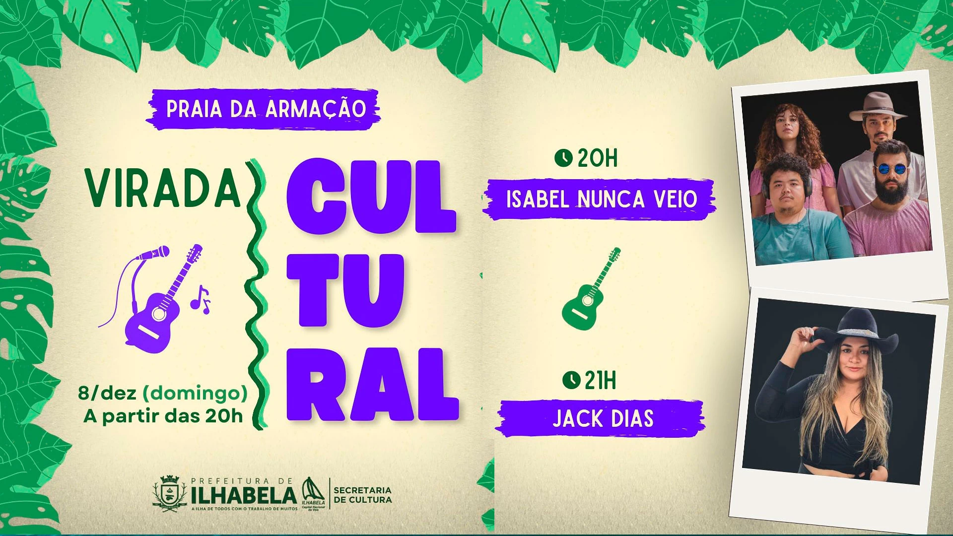 A Prefeitura de Ilhabela realiza, no próximo domingo (8), a partir das 20h, mais uma edição da Virada Cultural.