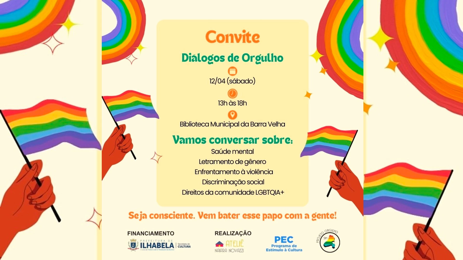 No dia 12 de abril, a partir das 13h, a Biblioteca Nilce Signorini, no bairro Barra Velha, será palco de um importante bate-papo sobre saúde mental, discriminação, combate à violência, letramento de gênero e direitos da comunidade LGBTQIA+.