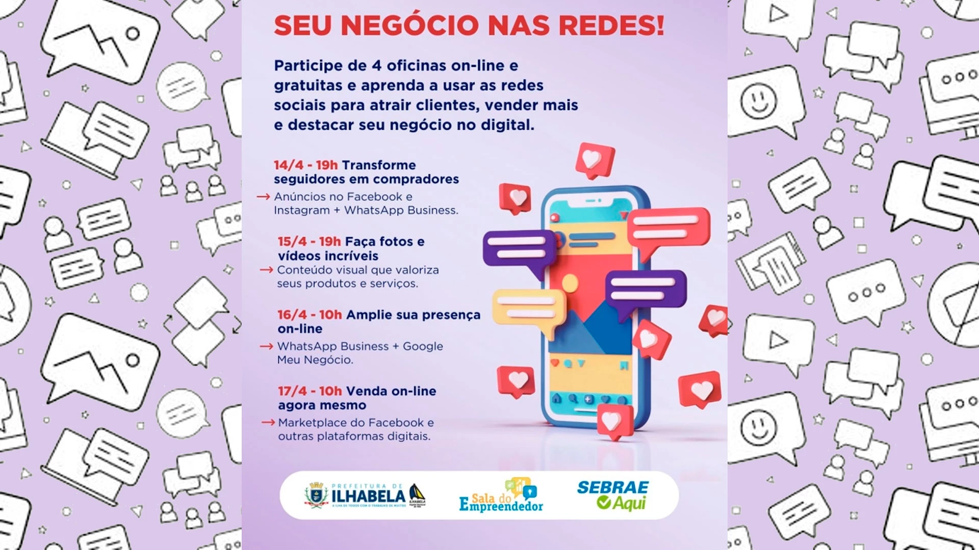Mais informações pelo WhatsApp da equipe do Posto Sebrae Aqui Ilhabela: (12) 99168-2875.