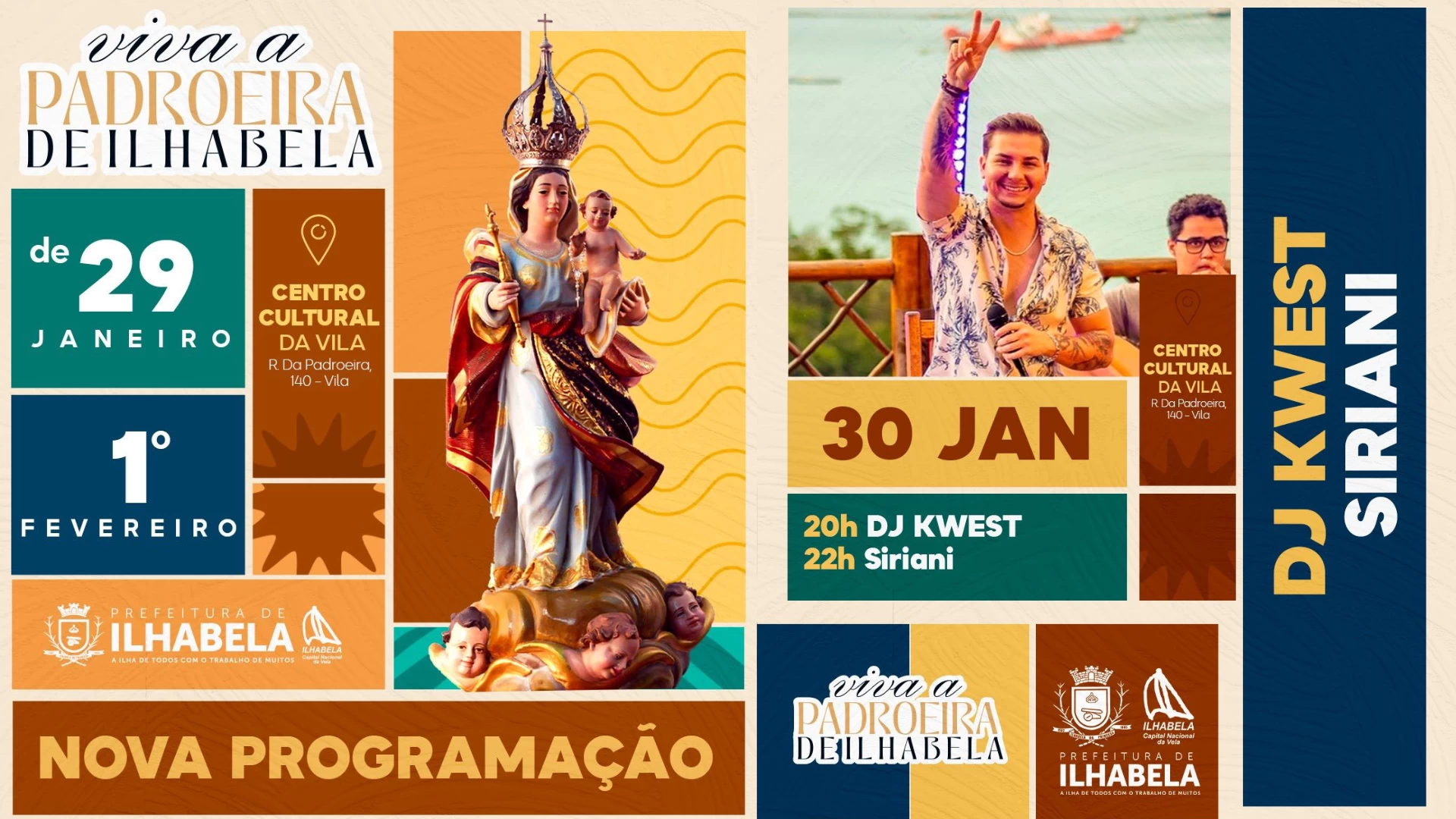 A Prefeitura de Ilhabela divulgou a programação oficial da tradicional Festa de Nossa Senhora D’Ajuda e Bom Sucesso, padroeira do município. Em 2026, as festividades serão realizadas em dois fins de semana consecutivos, entre os dias 23 de janeiro e 1º de fevereiro, reunindo atividades culturais e religiosas no Centro Cultural da Vila e no Centro Histórico.