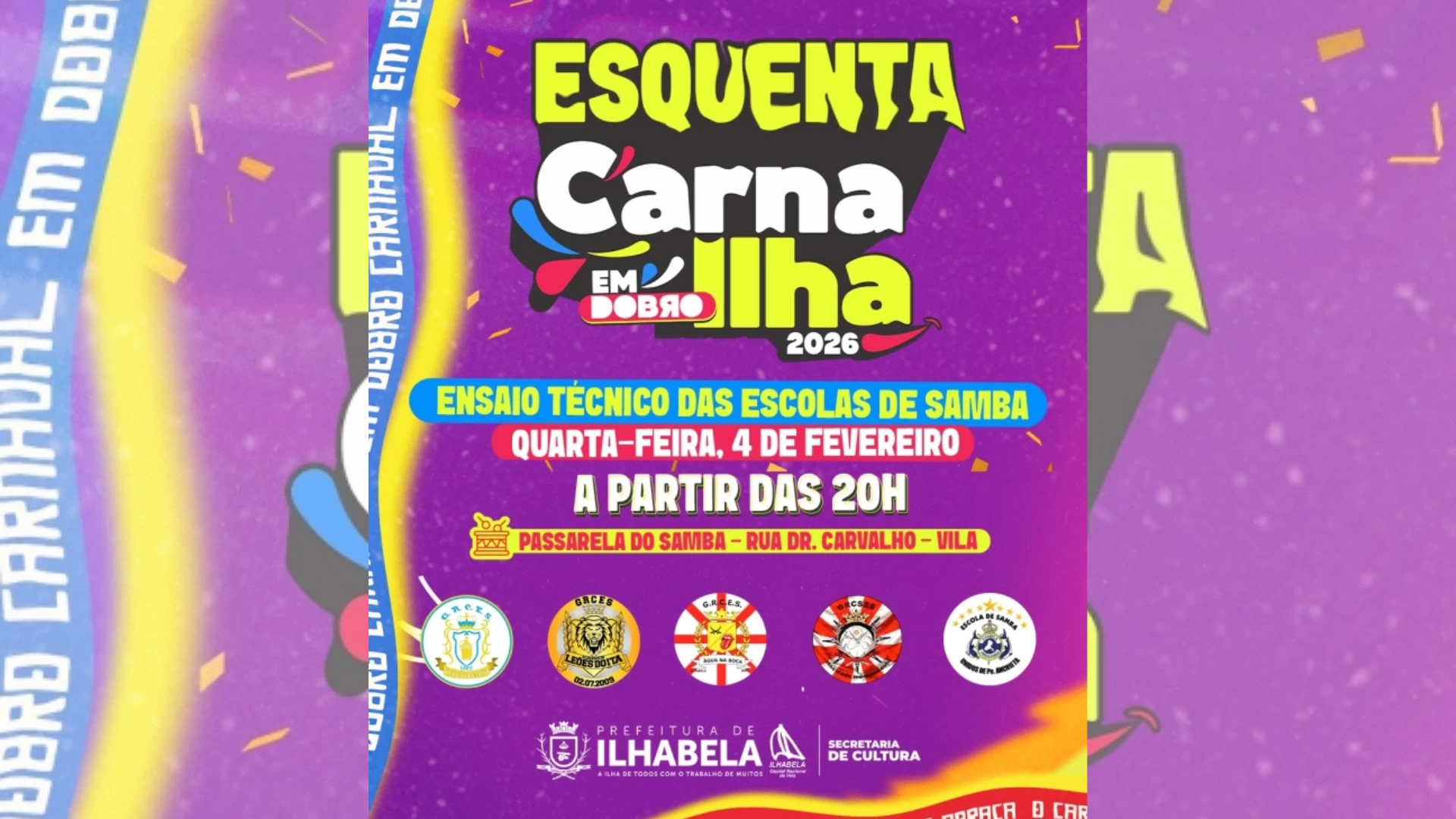 Na próxima quarta-feira (4), a Passarela do Samba, na Vila, recebe as escolas de samba de Ilhabela para um ensaio técnico a partir das 20h. Aberto ao público, o evento antecipa o clima do Carnaval de Ilhabela 2026 e funciona como um esquenta para os desfiles oficiais.