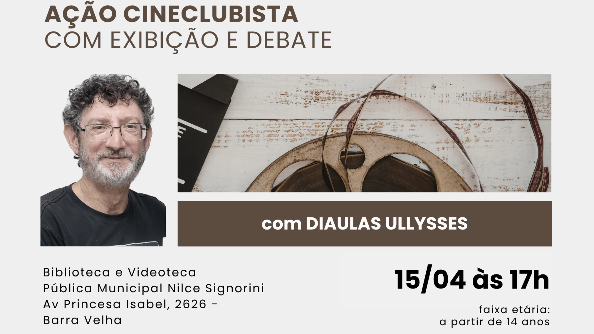 Nesta ação cineclubista, teremos a exibição de um filme seguida de um debate mediado por Diaulas Ullysses, criando um espaço para troca de ideias, diferentes interpretações e reflexões sobre a obra apresentada.