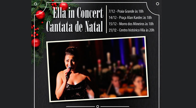 A Cantata de Natal de Ilhabela, traz “Ella in Concert”, com um repertório refinado, canções Clássicas de Natal, Trilhas Sonoras de Filmes e clássicos brasileiros. Tudo isso para levar a magia do Natal e alcançar um grande público.