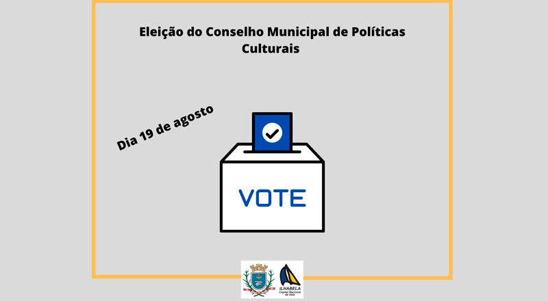 A eleição para o Conselho Municipal de Políticas Culturais será realizada, no dia 19 de agosto, no Polo de Educação Integrada de Ilhabela, o PEII da Barra Velha, onde serão eleitos 4 (quatro) representantes dos diferentes segmentos artísticos/culturais, sem necessidade de vinculação a entidade, coletivo ou organização de qualquer natureza.