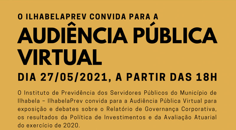 O Instituto de Previdência dos Servidores Públicos do Município de Ilhabela (IlhabelaPrev) realiza na próxima quinta-feira (27/5), a partir das 18h, uma audiência pública virtual.