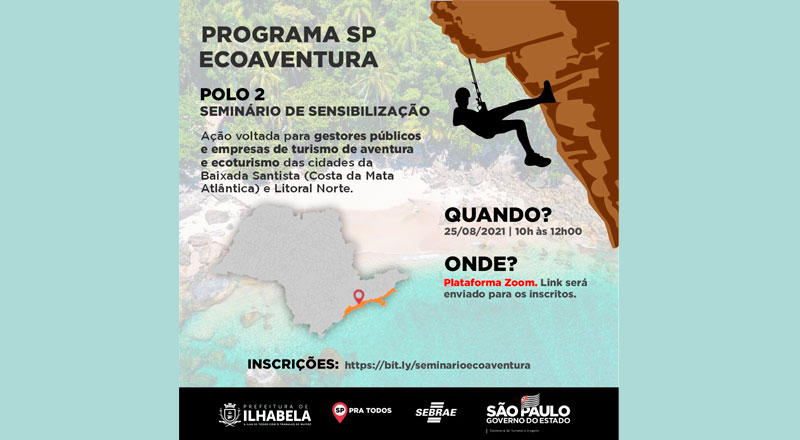 A Prefeitura de Ilhabela, em parceria com o Sebrae e a Secretaria de Turismo e Viagens do Estado de São Paulo, realiza o “Seminário de Sensibilização do Programa Ecoaventura” para o trade turístico da cidade.