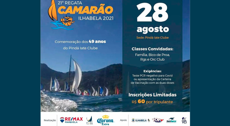 Ilhabela se prepara para receber a tradicional Regata do Camarão, que este ano está na sua 21ª edição. O evento será realizado no próximo sábado (28/08) e estão convidadas as classes Família, Bico de Proa, RGS e Orc Club.