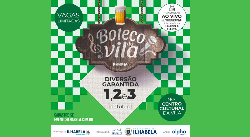 O evento será realizado no Centro Cultural da Vila e para participar do Boteco da Vila é muito simples: basta se cadastrar no formulário que você encontra no site https://eventosilhabela.com.br/ (um ingresso equivale a um cadastro por pessoa).