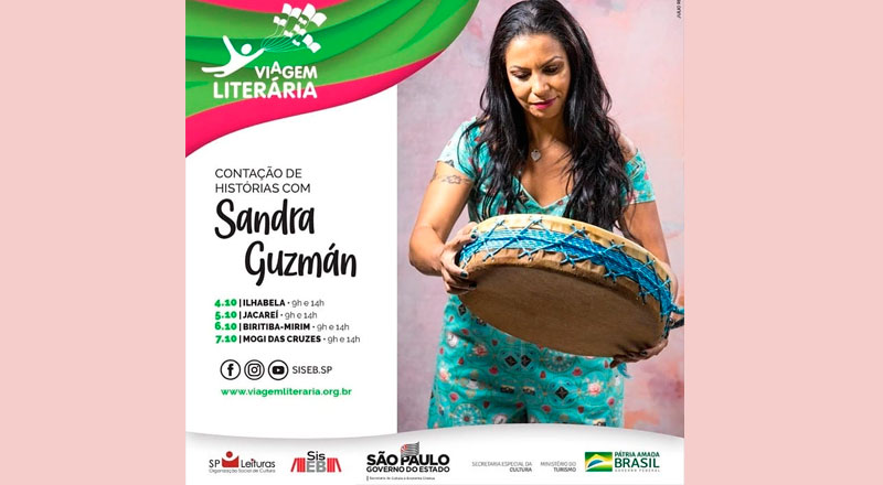 O programa “Viagem Literária” apresentará no dia 4 de outubro, das 9h às 14h, na Biblioteca e Videoteca da Barra Velha, uma contação de histórias para acompanhar os caminhos do conhecimento e da (re) descoberta dos contos populares, com Sandra Guzmán, contadora de histórias, brincante e mediadora de leitura.