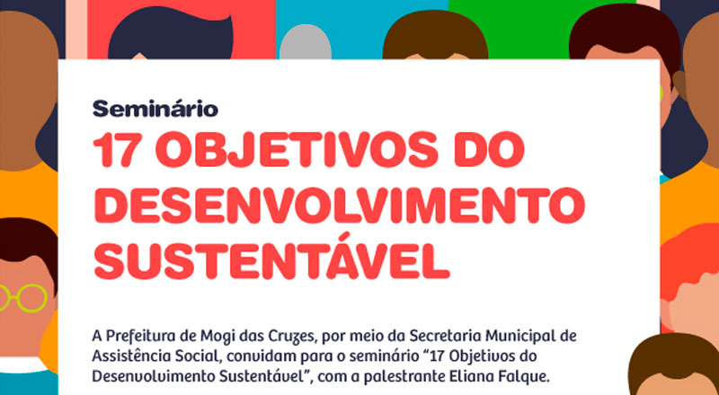 A Prefeitura de Mogi das Cruzes, por meio da Secretaria Municipal de Assistência Social, promove nesta quinta-feira (12/03), às 13 horas, o Seminário 17 Objetivos do Desenvolvimento Sustentável. O evento contará com apresentação da convidada Eliana Falque, membro do Conselho Estadual para os ODS e será realizado no auditório do prédio sede, que fica na avenida Vereador Narciso Yague Guimarães, nº 277, no Centro Cívico.