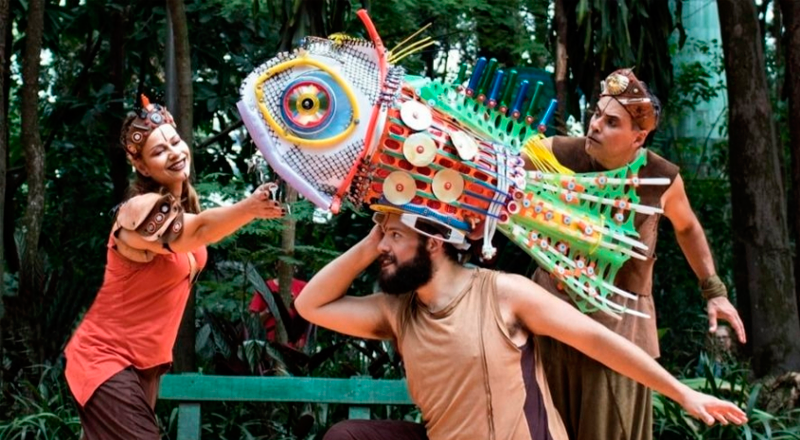 A partir dessa experiência, a Cia da Tribo buscou nas lendas e costumes dos povos ribeirinhos os elementos para a criação do trabalho. Os bonecos, que representam figuras folclóricas como Iara, a Mãe do Rio; Cabeça de Cuia; Jaguarão; Pirarucu e Cobra Grande foram confeccionados pelo artista plástico Adriano Castelo Branco a partir de materiais reutilizáveis.