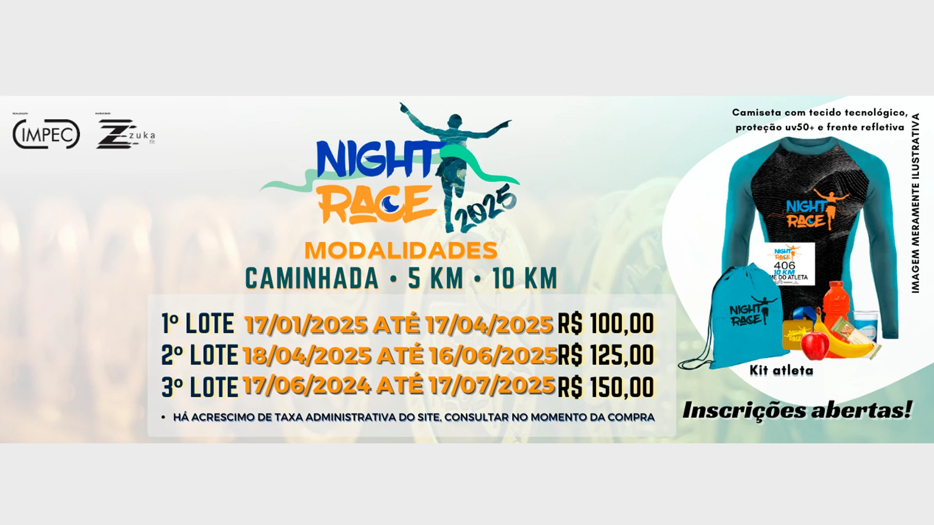 17 de Junho até o dia 17 de Julho de 2025 Corrida 5km, 10km ou caminhada 3 Km: R$ 150,00 (mais taxa administrativa do site)