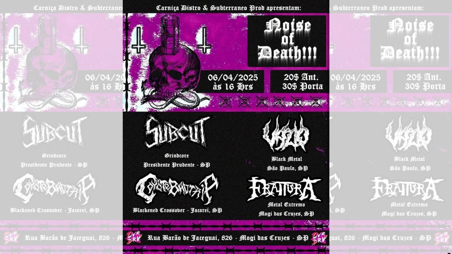 Mais informações: https://www.sympla.com.br/evento/noise-of-death/2872300?referrer=www.google.com