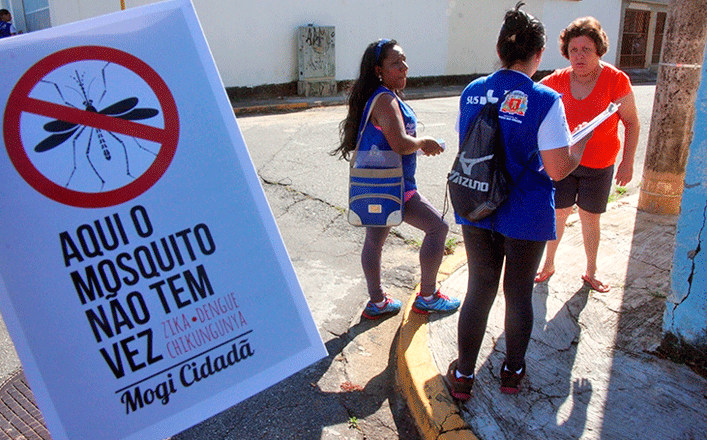 O vírus Zika é transmitido principalmente pelo Aedes aegypti, o mesmo da Dengue e da Chicungunya. Mogi das Cruzes deflagrou uma série de medidas de combate ao mosquito, como ações de conscientização, aprovação da lei que autoriza agentes da Prefeitura a entrar em imóveis particulares fechados (em caso de recusa ou ausência de alguém que possa abrir a porta para o agente sanitário quando isso se mostrar fundamental para a contenção da doença) e distribuição gratuita de 10 mil repelentes a gestantes que estão fazendo pré-natal pela rede pública, entre outras iniciativas. (JN)