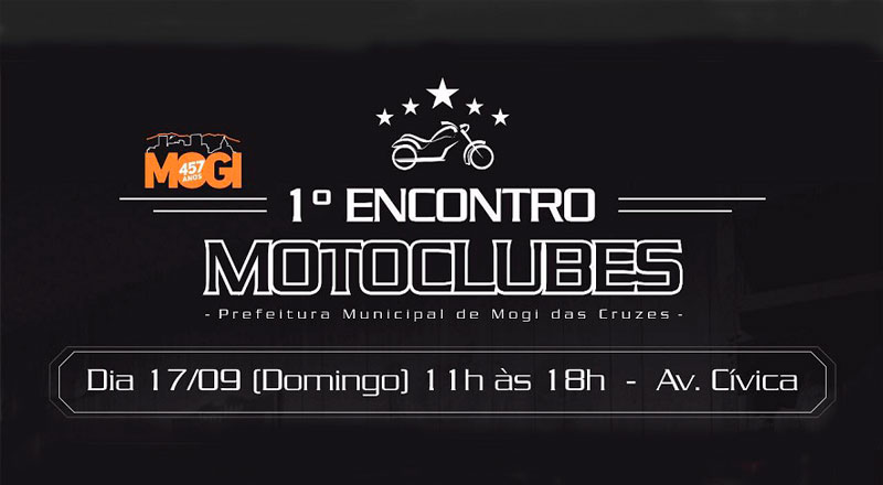 Dando continuidade às festividades do mês de aniversário de 457 anos da cidade, neste domingo (17/09) a Prefeitura de Mogi das Cruzes, por meio da Coordenadoria Municipal de Turismo, promove o 1º Encontro de Motoclubes de Mogi das Cruzes, na Avenida Cívica.