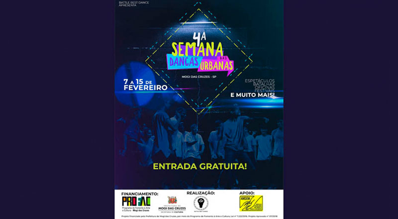 4ª Semana de Danças Urbanas: De 7 a 15 de fevereiro de 2019. Data: De 7 à 15 de Fevereiro de 2019 Horário: 08:00 Local: Diversos Ingresso: Gratuito.